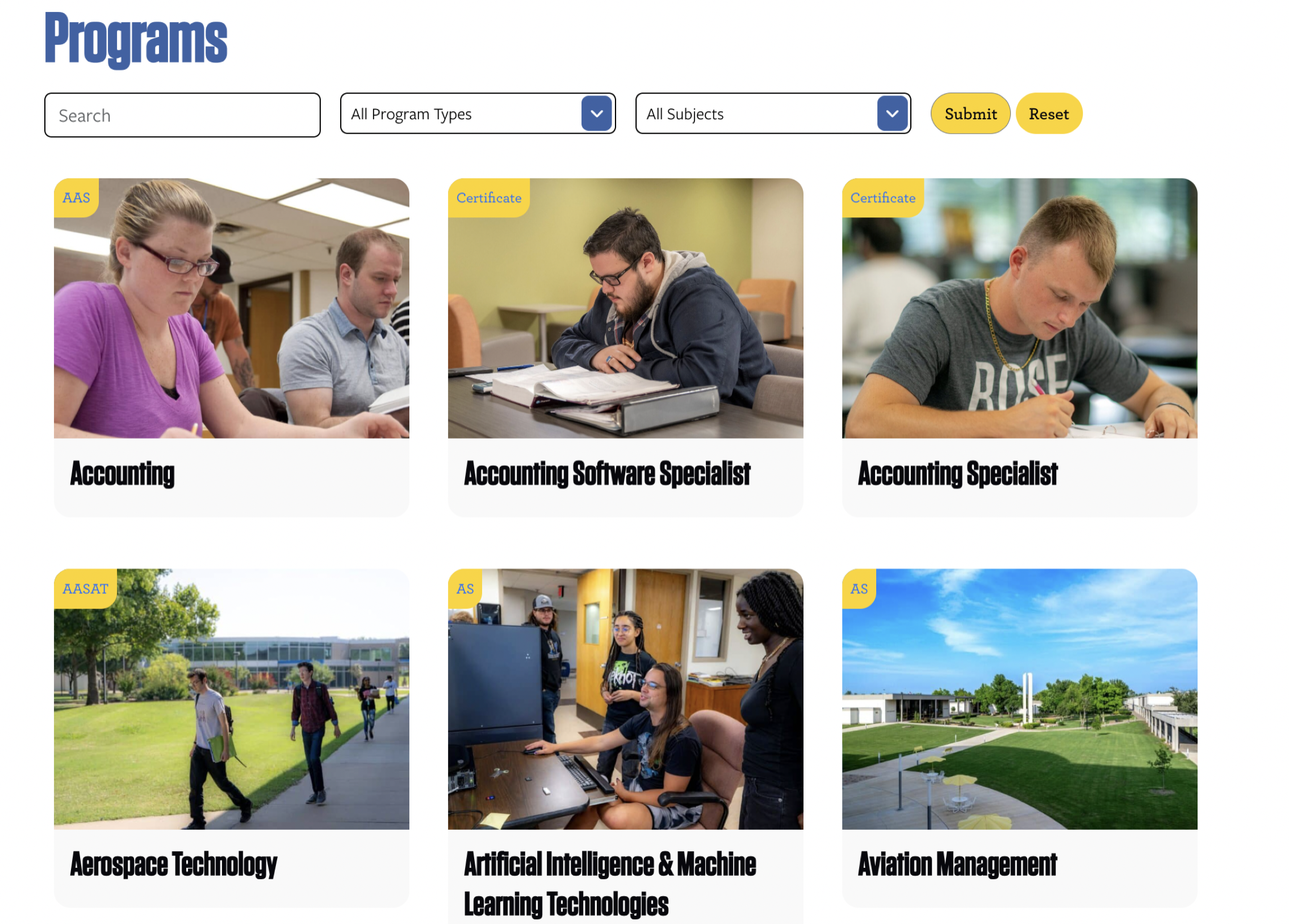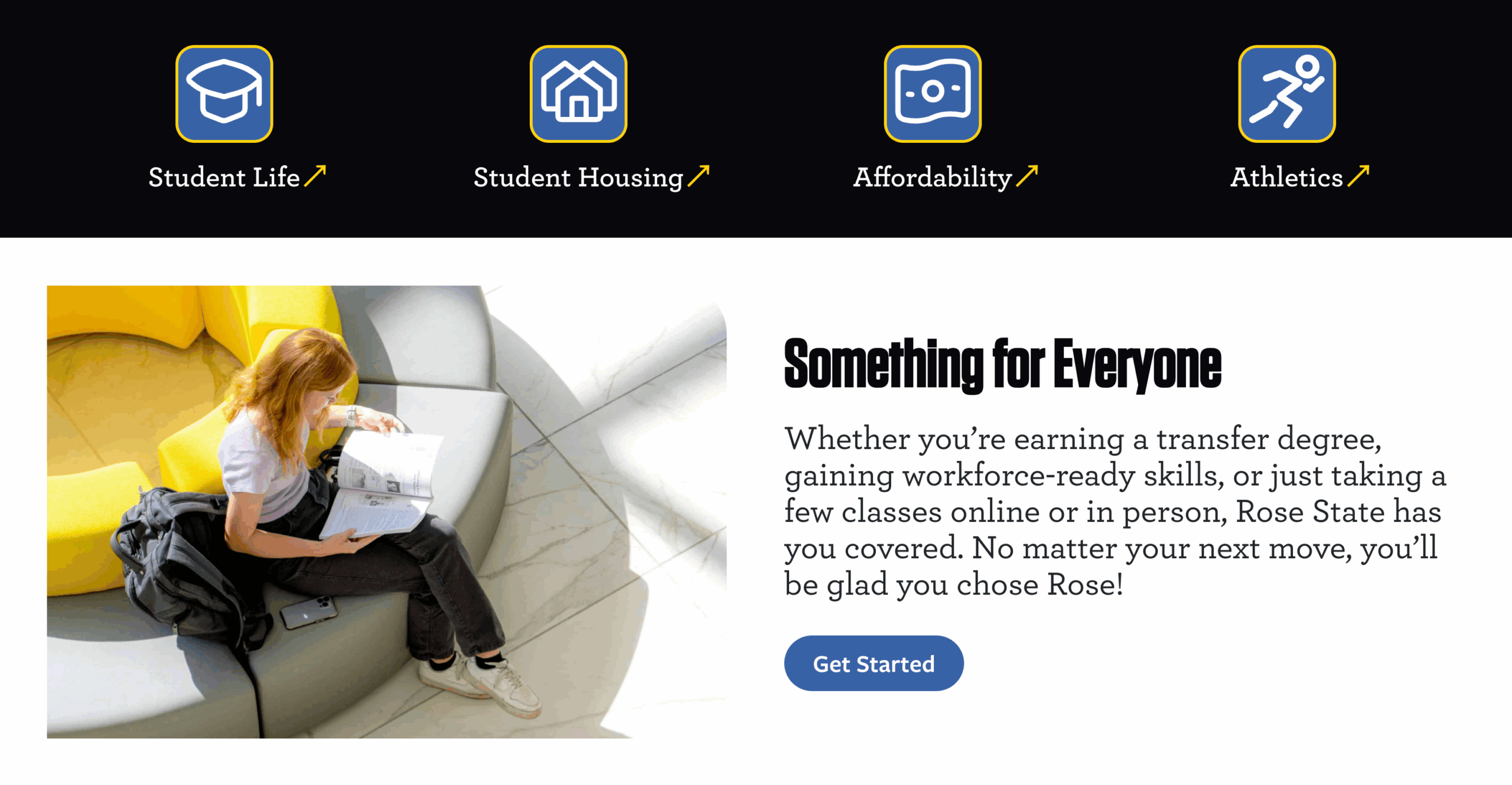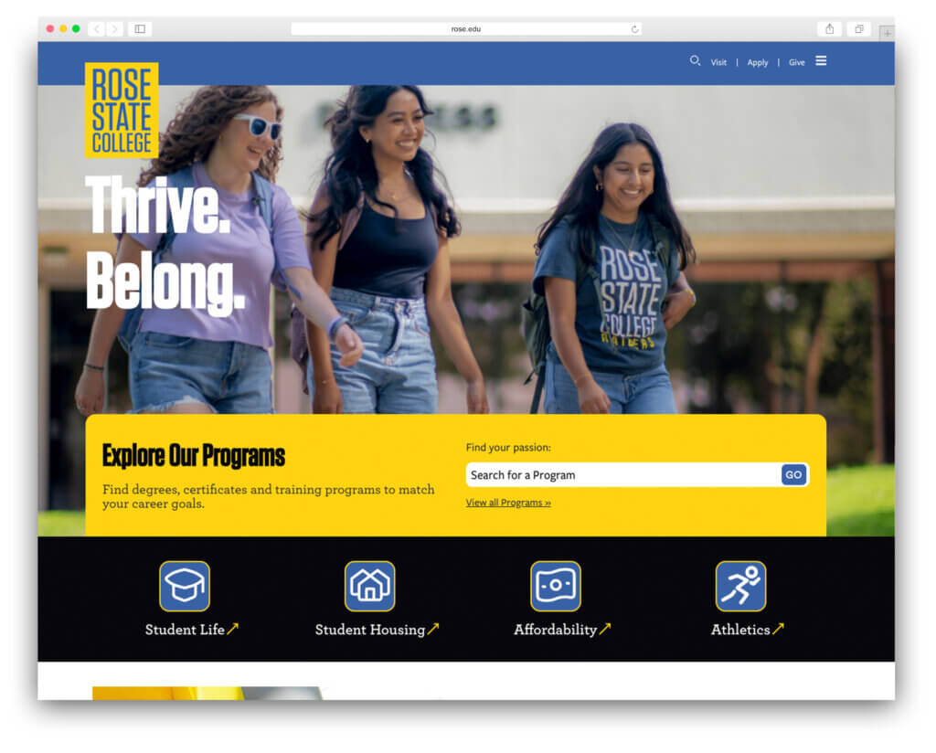 On the visual side, we brought in a clean, modern design anchored by high-quality photography. The site now feels more alive—with images that highlight campus life, student experiences, and the welcoming energy Rose State is known for.